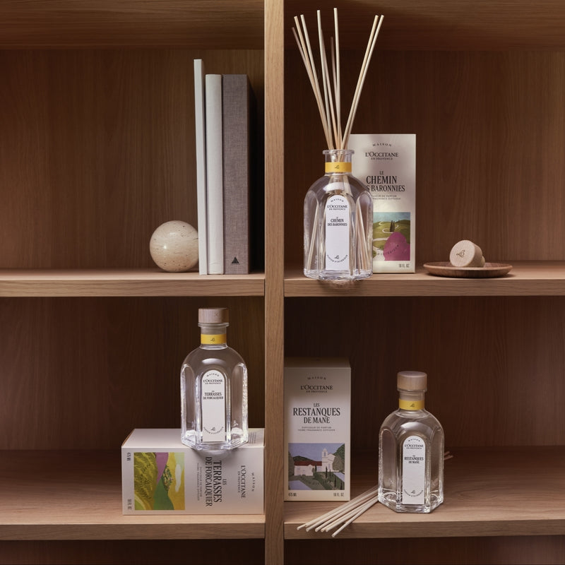 קולקציית הדיפיוזרים החדשים של בית ל'אוקסיטן במגוון ניחוחות שיעניקו לביתך ארומה מתוחכמת, בהשראת מהות הטבע והלייף סטייל הפרובנסיאלי. הצנצנת האלגנטית מהווה גם פריט דקורטיבי נצחי – שילוב של מינימליזם ואסתטיקה עם