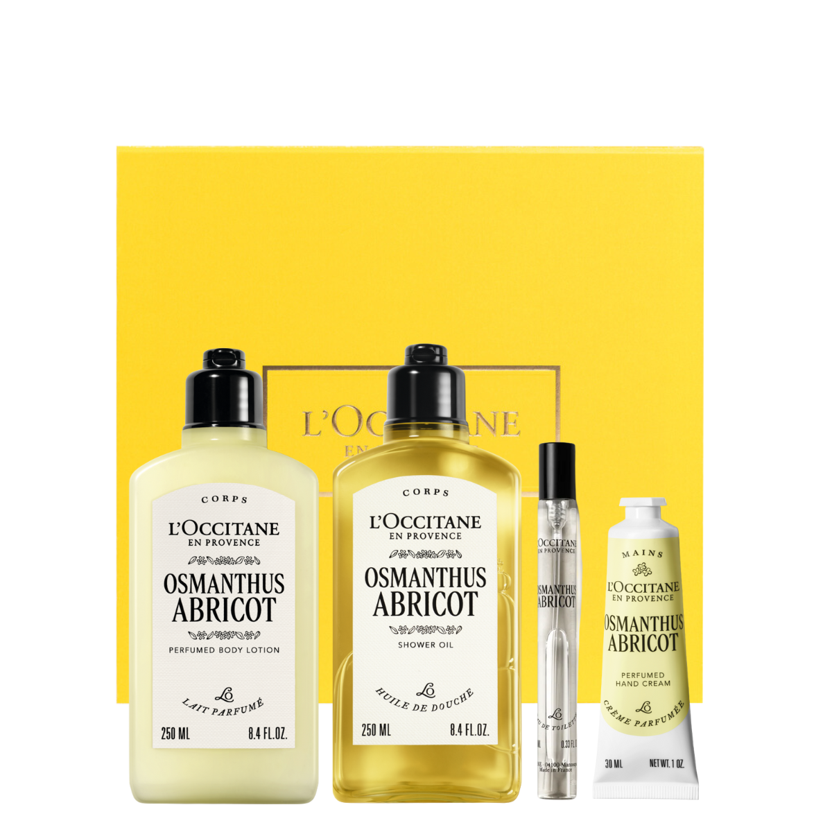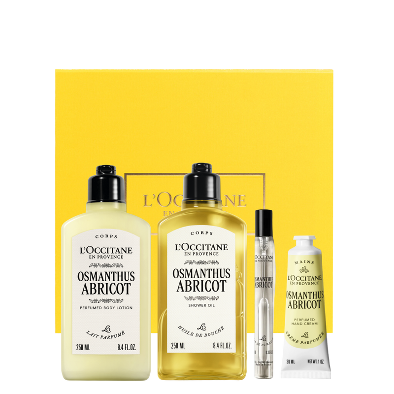 מארז מתנה מיוחד לטיפוח הגוף בשכבות לניחוח עמיד לאורך זמן, המכיל ניחוח עדין וקורן של פרח האוסמנטוס. הניחוח משלב פריחה רעננה עם רכות קטיפתית של תווי משמש עסיסי, אגס ותפוז, ומתמזג בנגיעות קרמיות ועציות. העניקו חוויה חושנית שמחבקת ומעניקה לעור רכות משי.
