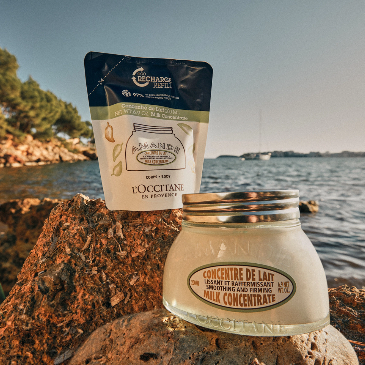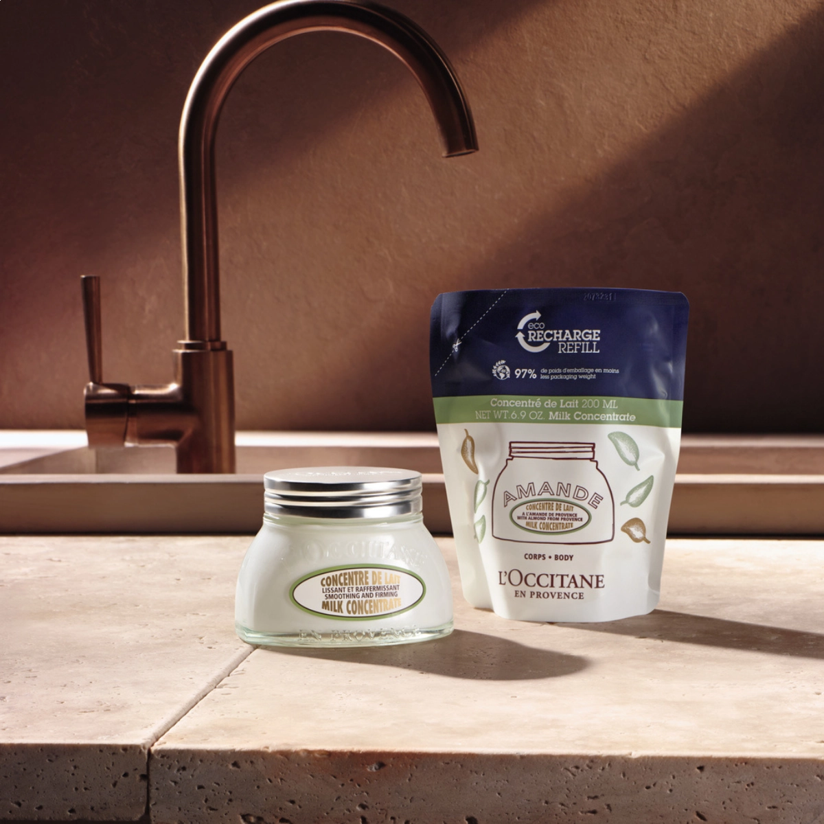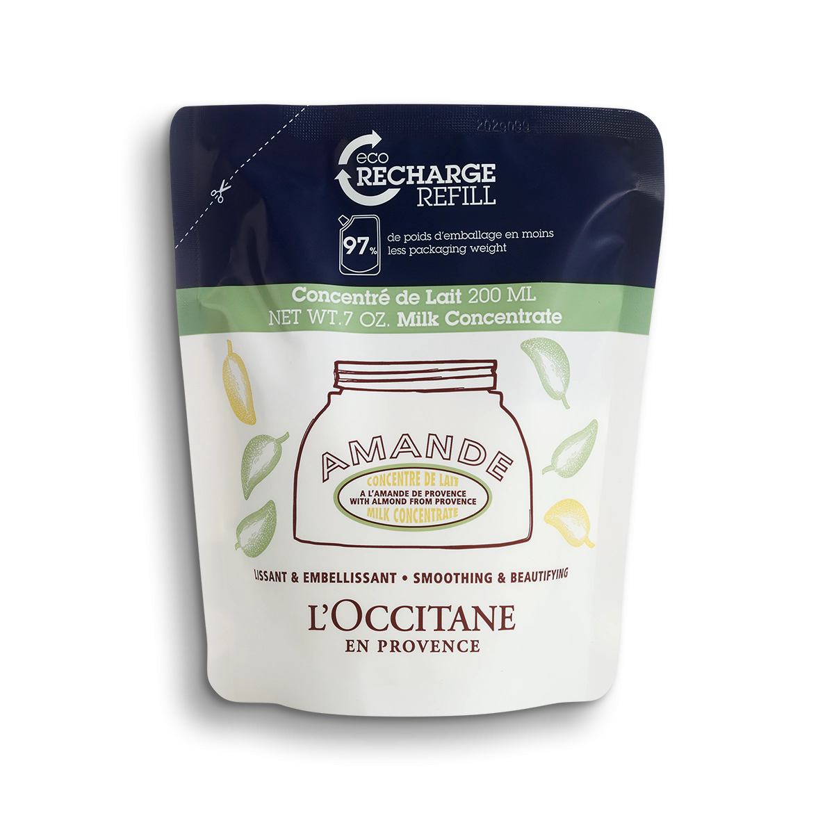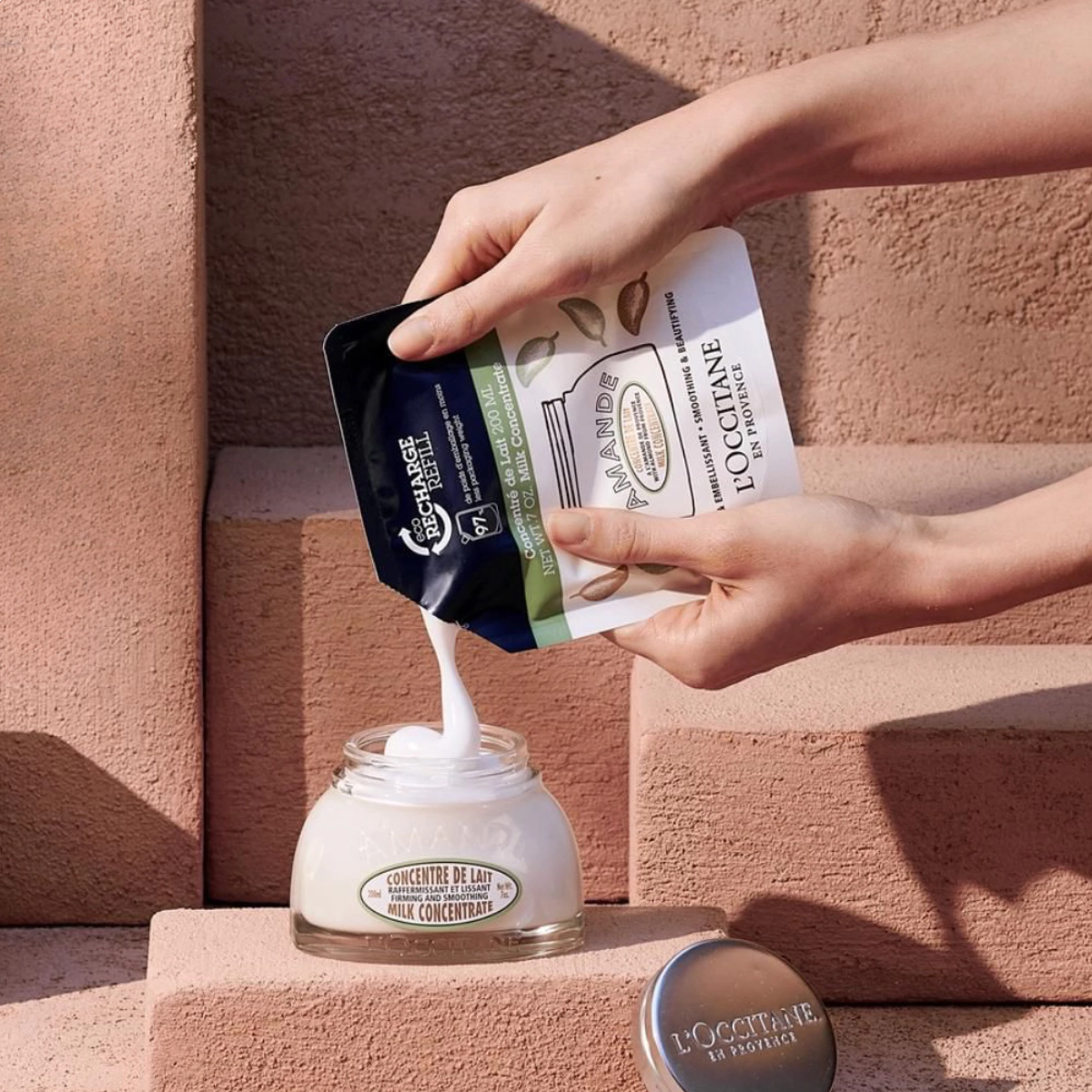 ל'אוקסיטן מציעה את מוצרי הטיפוח הנמכרים ביותר מסדרת השקדים באריזות מילוי אקולוגיות, חסכוניות לכיס ולסביבה