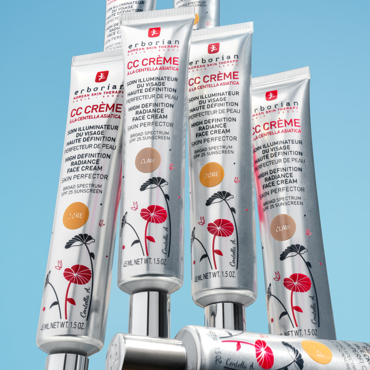 CC Cream זמין בשלושה גוונים המכסים מגוון רחב של גווני עור: Clair לגווני עור בהיר, Dore לגוון עור שזוף, וקרמל לגוון עור שזוף מאוד וכהה.