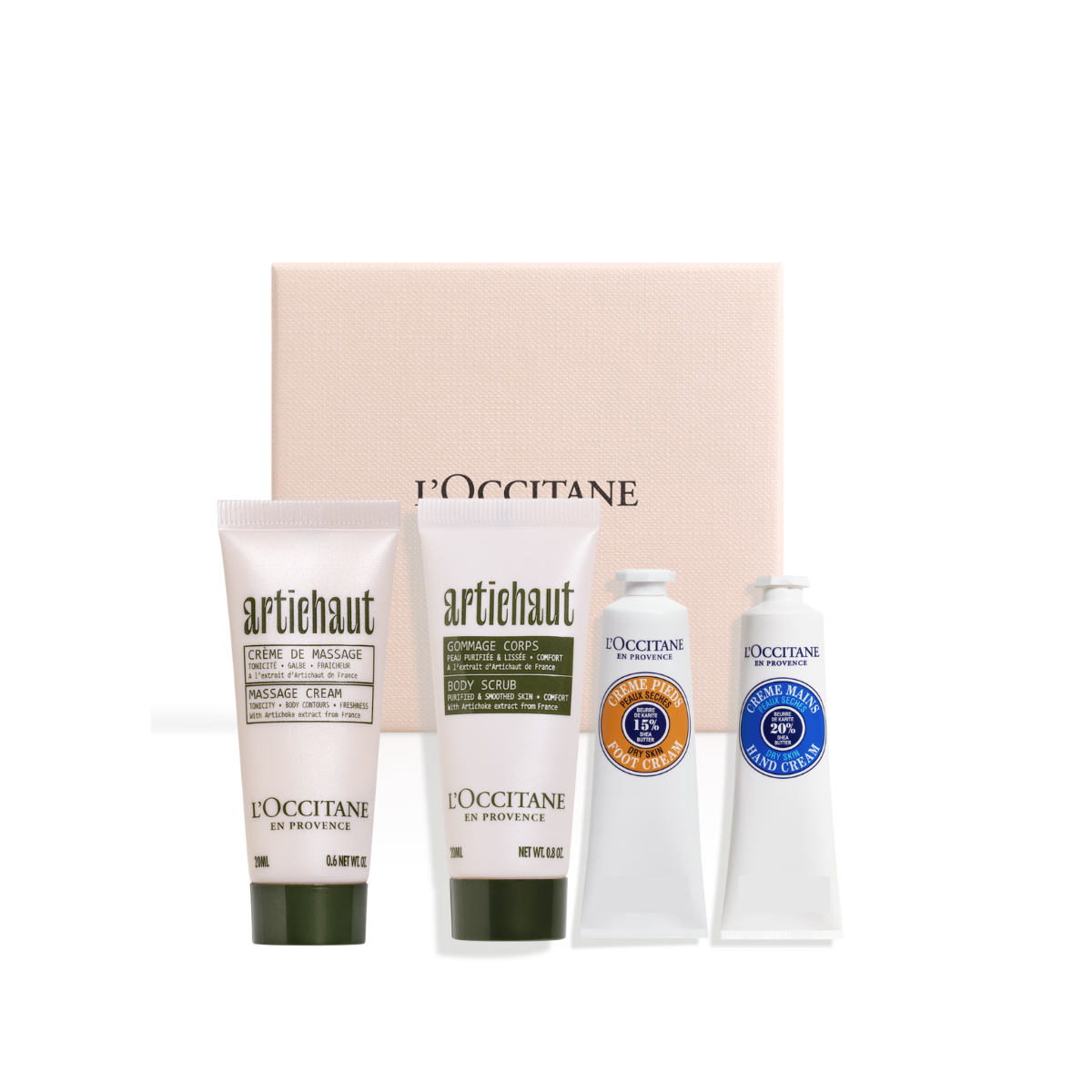 ערכת נסיעות למיצוק וטיפוח העור המשלבת מוצרים בגודל מיוחד מסדרת הארטישוק המסייעים לשיפור מראה הצלוליט ומסדרת חמאת השיאה המעניקים לחות והגנה לעור.