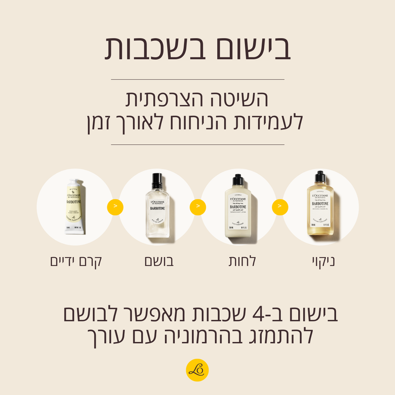 מאחורי כל בושם, מתגלה סדרת מוצרי טיפוח המאפשרת לניחוח האהוב להתמזג עם עורך בהרמוניה, לחיזוק עמידות הניחוח המרענן והאהוב של החרצית הזהובה