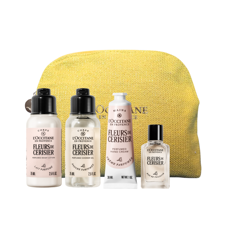 ערכה לטיפוח ובישום הגוף מקולקציית פריחת הדובדבן האהובה בניחוח פרחוני ועדין