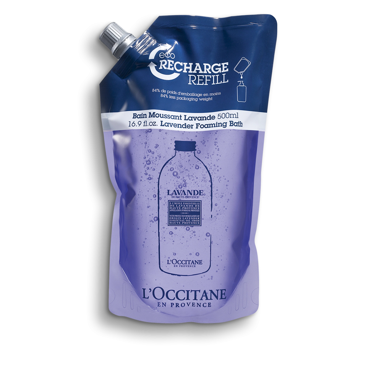 קצף אמבט לבנדר באריזת מילוי אקולוגית המציעה את כל היתרונות המרגיעים של לבנדר מפרובאנס.