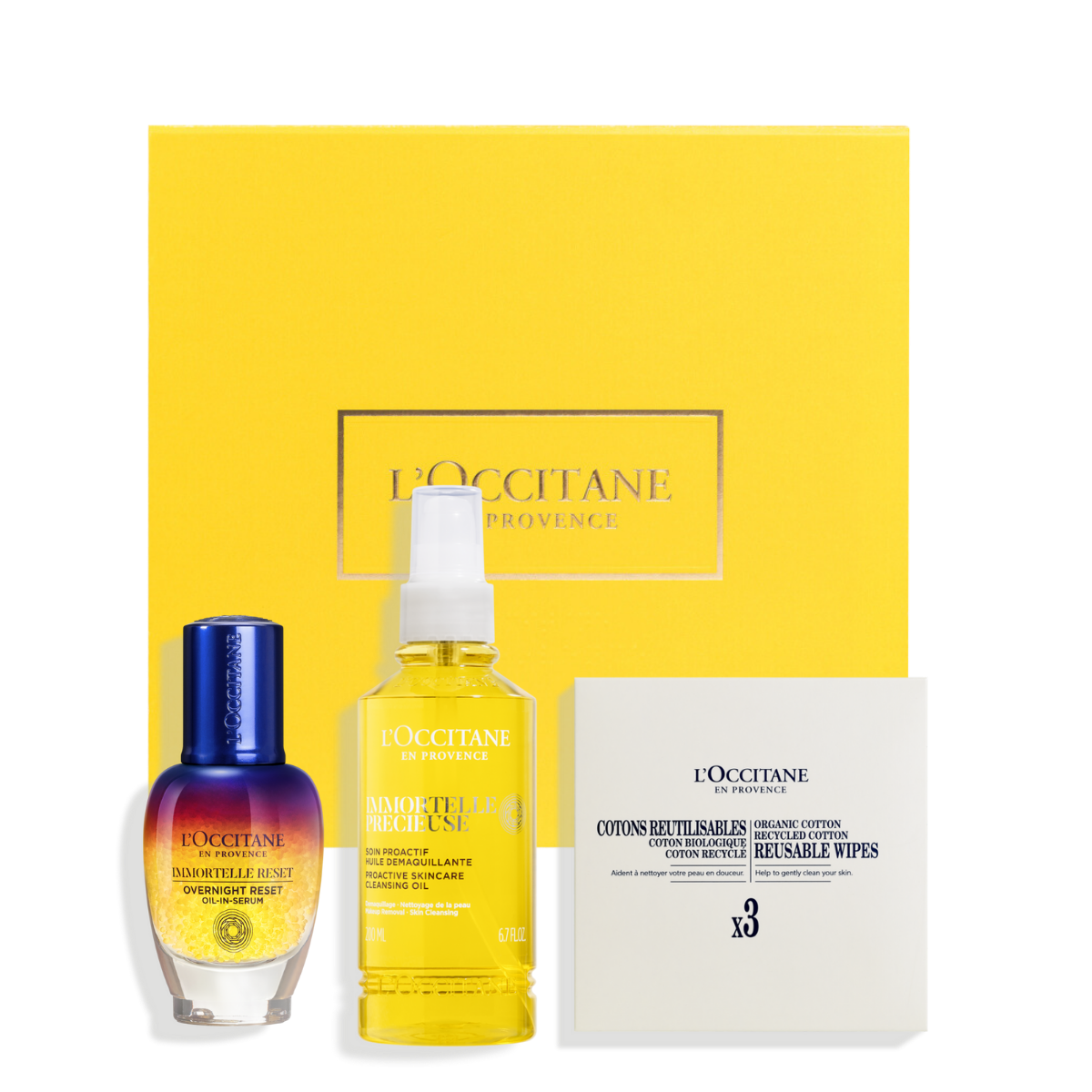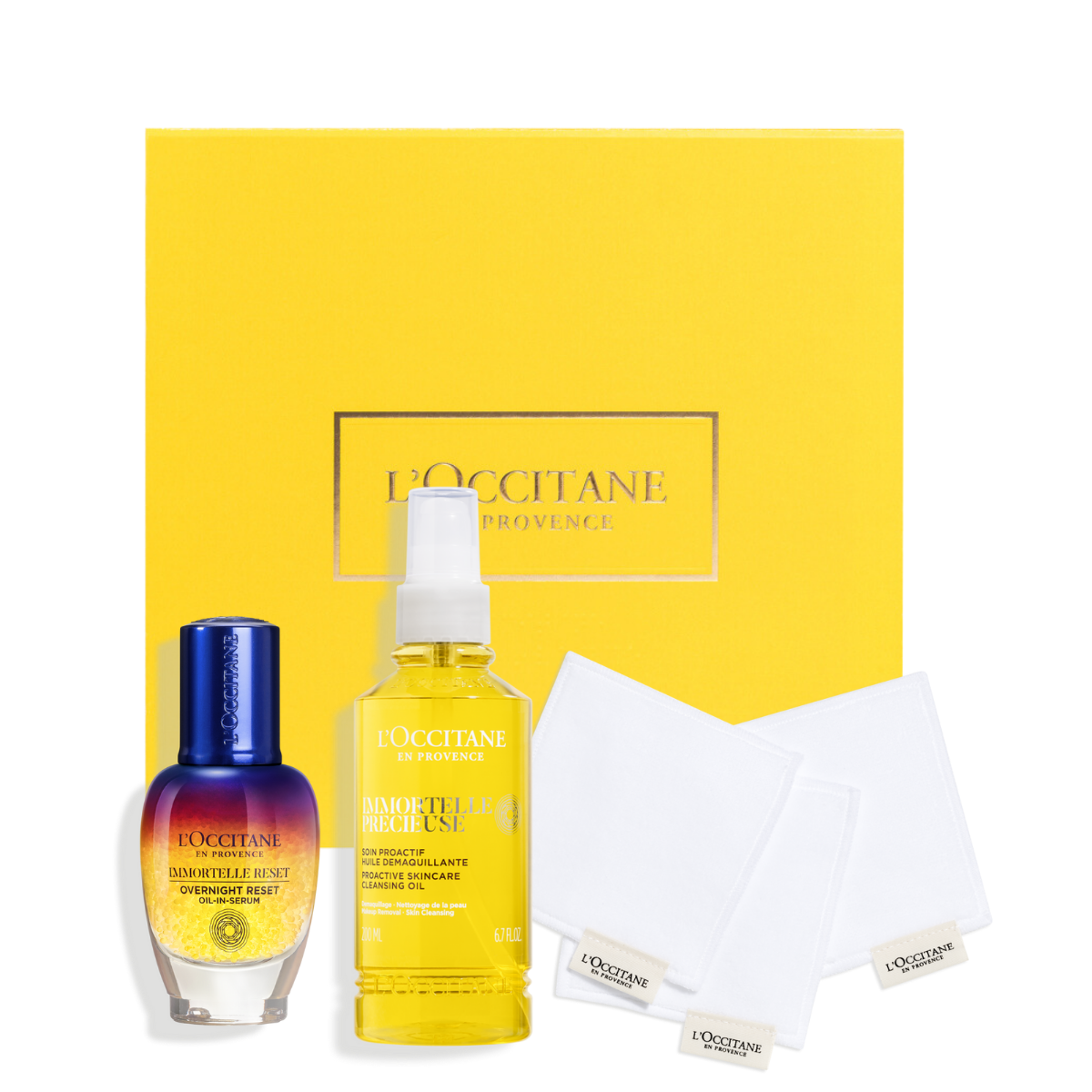 ערכה מושלמת לטיפוח אנטי אייג'ינג מסדרת אימורטל - קולקציית טיפוח העור עטורת הפרסים המועשרת בשמן אתרי אורגני של פרח האימורטל בעל תכונות אנטי אייג'ינג ייחודיות. המארז כולל מוצרים להסרת איפור וחידוש עור הפנים.