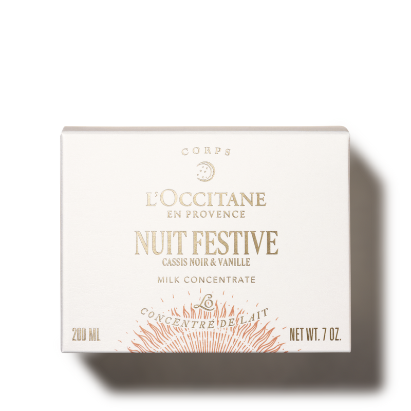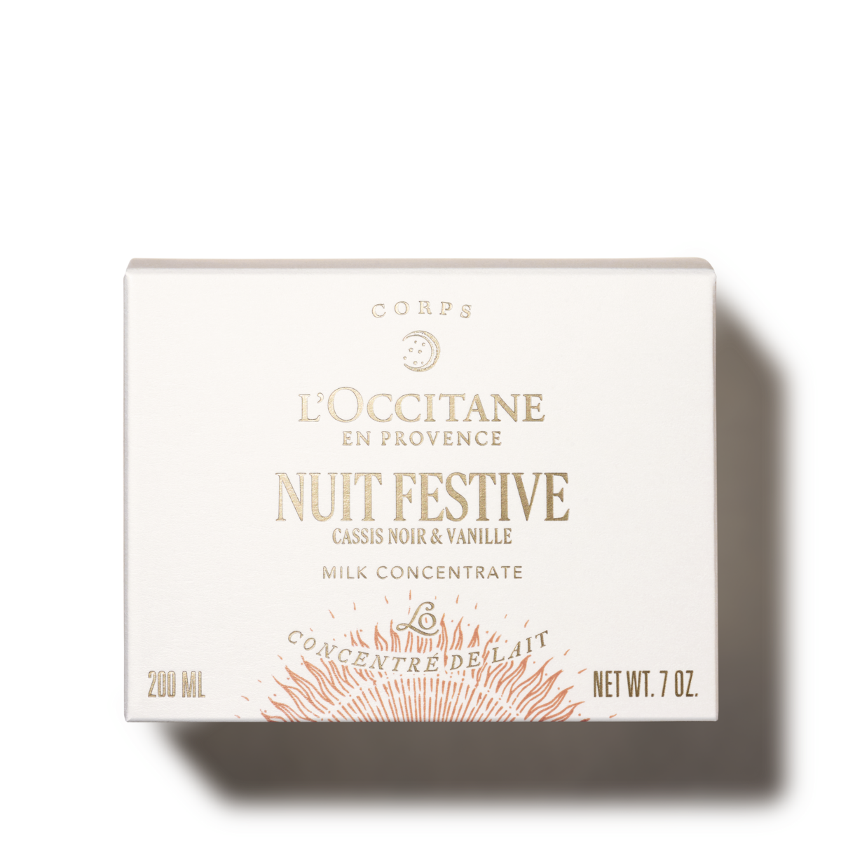 חלב גוף מרוכז מקולקציית שקדים, וניל ודומדמנית שחורה - פסטיבל לילה Nuit Festive במהדורה מוגבלת.