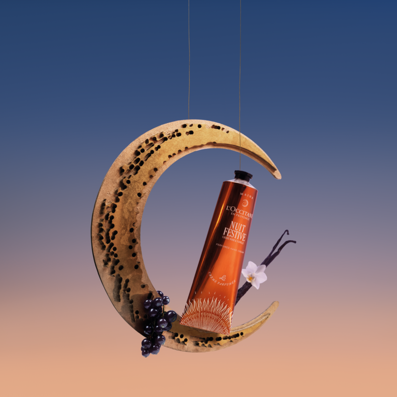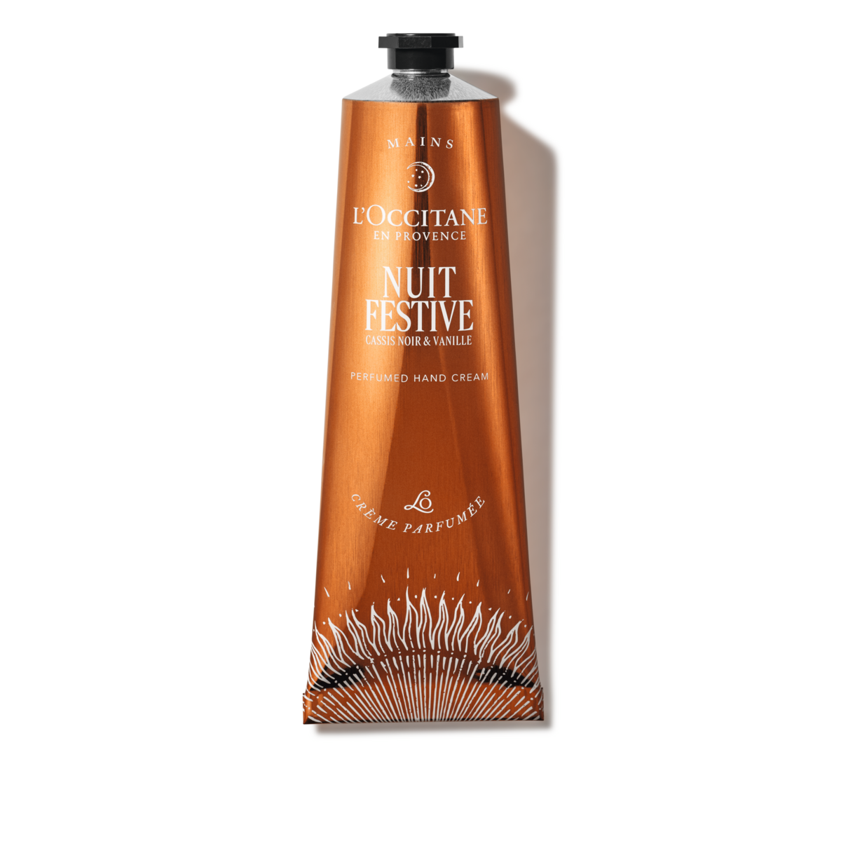 קרם ידיים מקולקציית שקדים, וניל ודומדמנית שחורה - פסטיבל לילה Nuit Festive במהדורה מוגבלת.