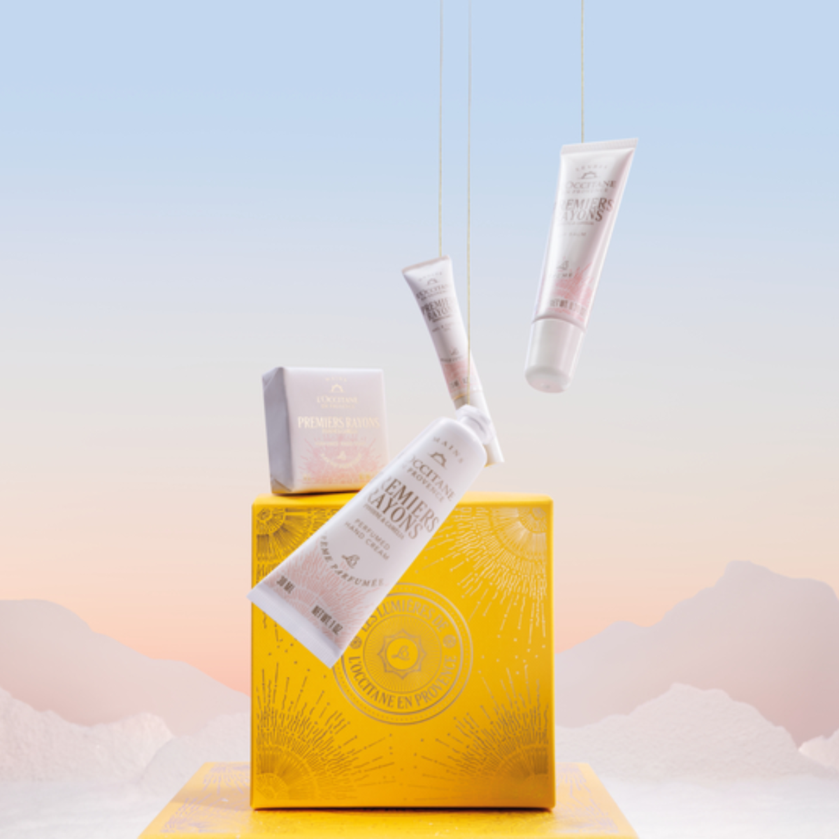 מקולקציית פאוני וקמליה - קרני שמש ראשונות (Premiers Rayons) במהדורה מוגבלת. הקולקציה משלבת בין ניחוחות פאוני וקמליה ליצירת ניחוח פרחוני, פירותי ועדין, בהשראת אורו הרך של בוקר חורפי בפרובאנס, המביע תחושת התעוררות רכה ונעימה