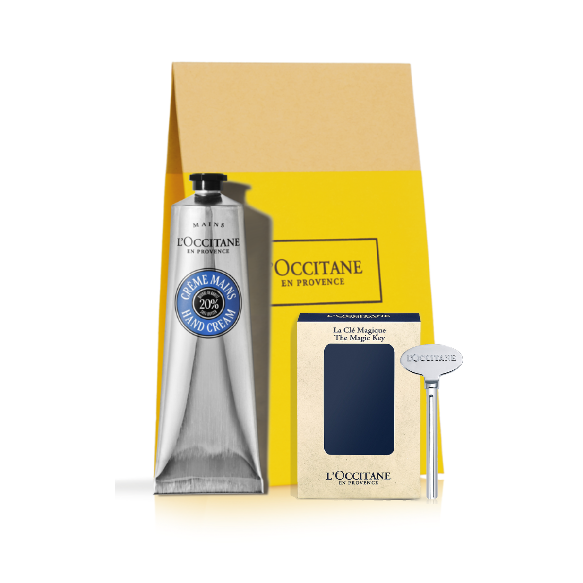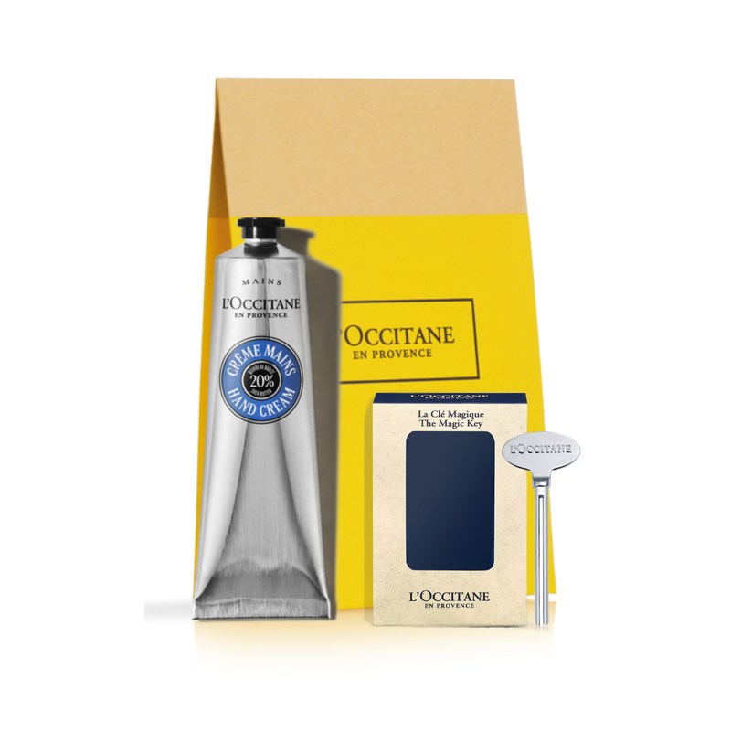 קרם ידיים חמאת שיאה האהוב במארז עם מפתח הקסם, אביזר המאפשר לך לסחוט את השפופרת מבלי לבזבז אף טיפת קרם.