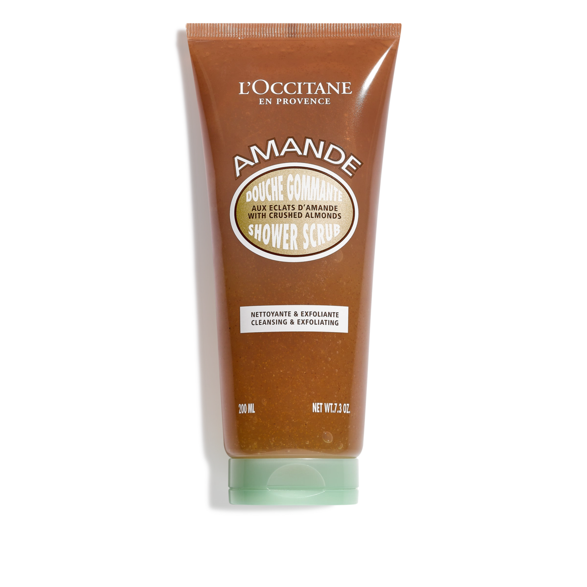 מועשר בשמן שקדים ובקליפות כתושות של שקדים, ג'ל הרחצה המקרצף והמקציף נמס לתוך העור, מנקה בעדינות ומבצע פילינג עדין כדי להסיר לכלוך