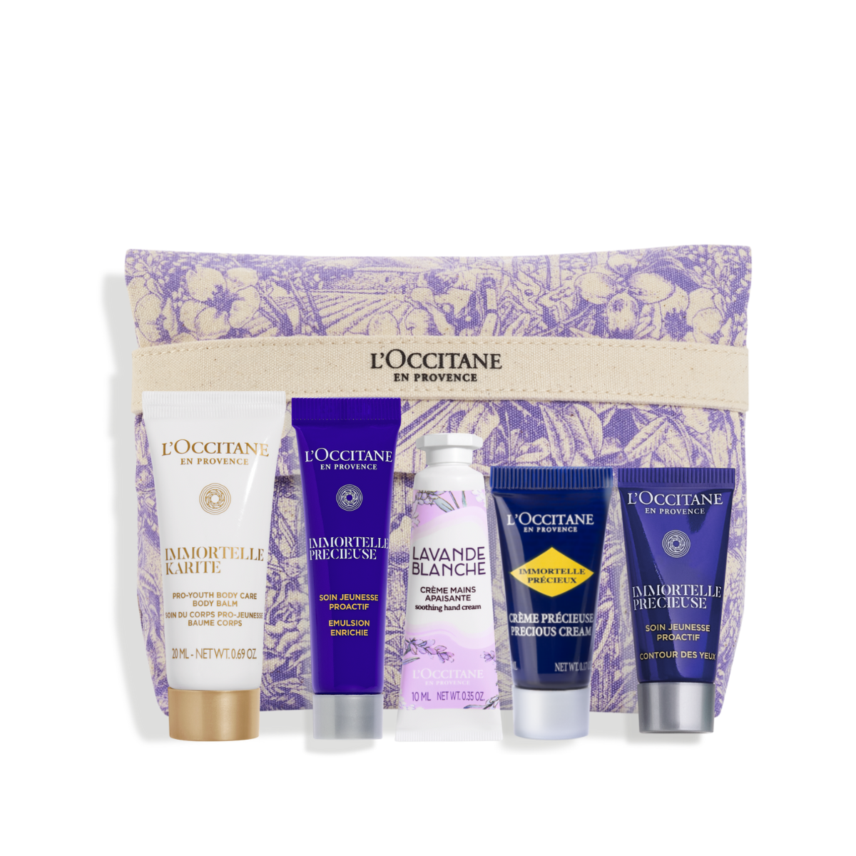 ערכת נסיעות לטיפוח הפנים והגוף שתעניק לעורכם מראה רענן, מוצק וזוהר! שילוב ייחודי של מוצרי אימורטל פרשס המטפחים את העור ומסייעים בהגנה מפני סימני גיל, לצד קרם ידיים בניחוח לבנדר מרגיע וקרם גוף עשיר להזנה עמוקה.