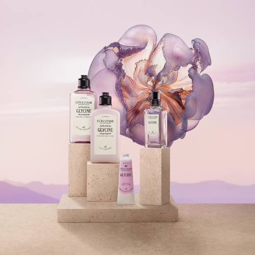 גלו מחדש את הבושם או דה פרפיום ויסטריה ויסטריה (לשעבר GLYCINE), בעיצוב מודרני ומינימליסטי המשקף את המורשת התרבותית של בית ל'אוקסיטן אן פרובנס.